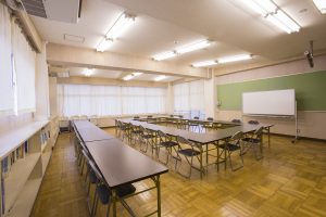 センターは公共施設(旧学校)にて安心・安全を基に外壁、他改修工事のため、